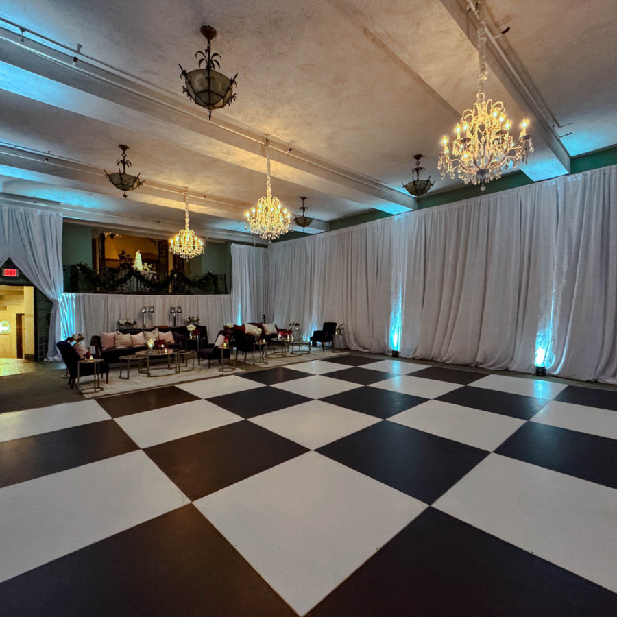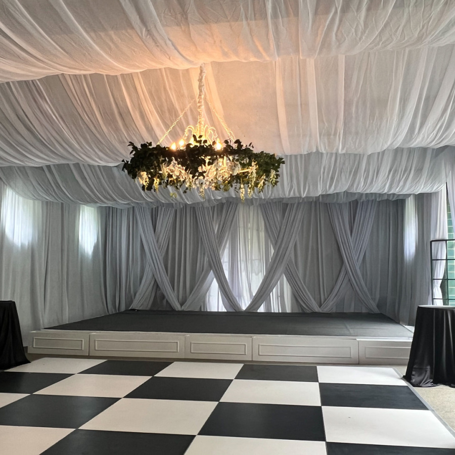 Dancefloors are a entertainment focal point that can easily be roughed up and damage. We take care of our dancefloors by making sure they are maintained regularly and keep in pristine condition year around. We offer black and white dance floors. So you can do all black, all white or mix of both black and white