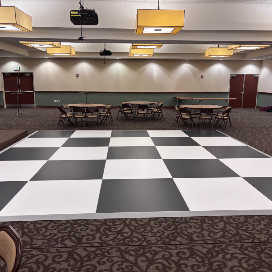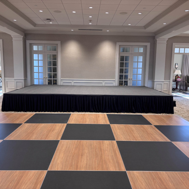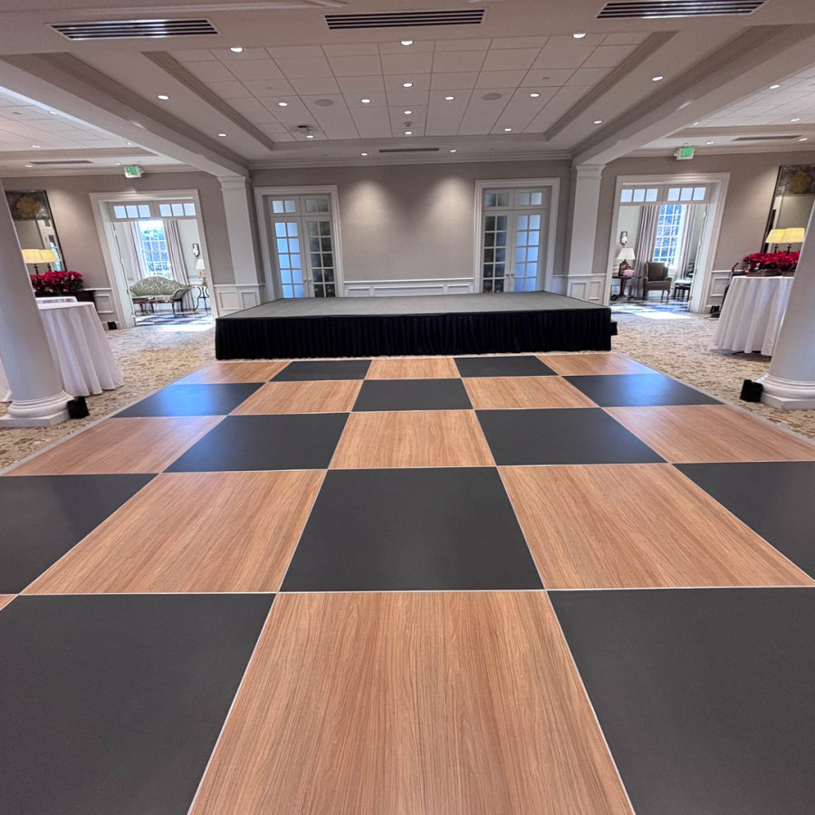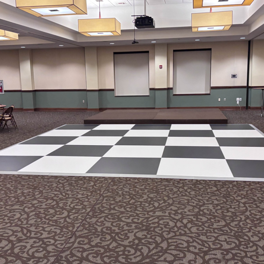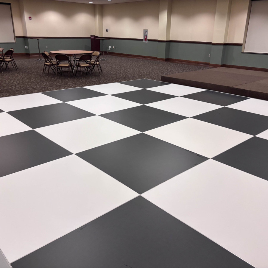 Dancefloors are a entertainment focal point that can easily be roughed up and damage. We take care of our dancefloors by making sure they are maintained regularly and keep in pristine condition year around. We offer Black,White, and Brown dance floors of any size. So you can do all black, all white, or mix of both black, white and brown