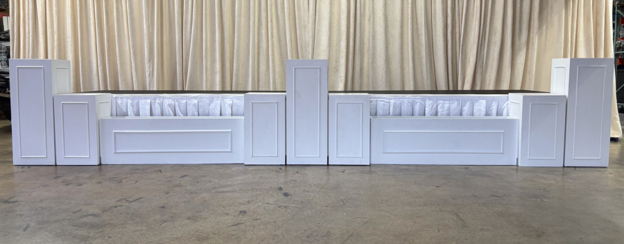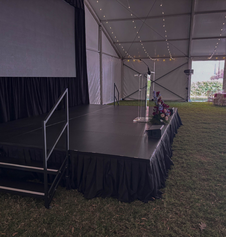 Our stages are kept in pristine condition year around. We offfer any size stage for any occasion. Our stages come with carpet and steps with or without handrails. The stages heights we offer are 8inch,16inch,24 inch and high risers for the stage at 32 inchs. We also provide stage skirt either in black or white. For more decorative look we have a bunch of options to choose from.